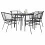 Juego de comedor jardín 5 piezas cojines ratán sintético negro