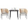 Este juego de comedor de jardín es una gran elección para comer al aire libre o simplemente para relajarte en el jardín, el patio o la terraza. Material duradero: El ratán sintético, también conocido como ratán sintético, es un material sintético resistente y de bajo mantenimiento que se parece al ratán natural. Es ligero, fácil de limpiar y se usa comúnmente para muebles de exterior debido a su durabilidad y propiedades resistentes a la intemperie.Estructura robusta y estable: La estructura de acero con recubrimiento en polvo es fuerte, estable, duradero y resistente a la corrosión y a las inclemencias del tiempo, lo que garantiza un rendimiento duradero.Respaldo y reposabrazos prácticos: Esta silla de jardín cuenta con un respaldo y dos reposabrazos que ofrecen un soporte y comodidad óptimos para los usuarios.Funda desenfundable y lavable: Estos cojines de asiento cuentan con fundas desenfundables para facilitar el lavado y mantenimiento.Superficie de vidrio: La superficie de la mesa de exterior es de vidrio templado resistente y duradero, por lo que es fácil de limpiar con un paño húmedo y añade un toque de elegancia a tu espacio exterior. Información útil:Para asegurarte de que tus muebles de exterior se mantengan hermosos, recomendamos protegerlos con una funda impermeable.