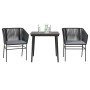 Juego comedor jardín 3 pzas cojines ratán sintético vidrio gris