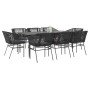 Juego comedor jardín 9 pzas cojines ratán sintético vidrio gris