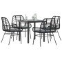 Este juego de comedor de jardín es una gran elección para comer al aire libre o simplemente para relajarte en el jardín, el patio o la terraza. Material duradero: El ratán sintético, también conocido como ratán sintético, es un material sintético resistente y de bajo mantenimiento que se parece al ratán natural. Es ligero, fácil de limpiar y se usa comúnmente para muebles de exterior debido a su durabilidad y propiedades resistentes a la intemperie.Estructura robusta y estable: La estructura de acero con recubrimiento en polvo es fuerte, estable, duradero y resistente a la corrosión y a las inclemencias del tiempo, lo que garantiza un rendimiento duradero.Respaldo y reposabrazos prácticos: Esta silla de jardín cuenta con un respaldo y dos reposabrazos que ofrecen un soporte y comodidad óptimos para los usuarios.Funda desenfundable y lavable: Estos cojines de asiento cuentan con fundas desenfundables para facilitar el lavado y mantenimiento.Superficie de vidrio: La superficie de la mesa de exterior es de vidrio templado resistente y duradero, por lo que es fácil de limpiar con un paño húmedo y añade un toque de elegancia a tu espacio exterior. Información útil:Para asegurarte de que tus muebles de exterior se mantengan hermosos, recomendamos protegerlos con una funda impermeable.