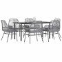 Este juego de comedor de jardín es una gran elección para comer al aire libre o simplemente para relajarte en el jardín, el patio o la terraza. Material duradero: El ratán sintético, también conocido como ratán sintético, es un material sintético resistente y de bajo mantenimiento que se parece al ratán natural. Es ligero, fácil de limpiar y se usa comúnmente para muebles de exterior debido a su durabilidad y propiedades resistentes a la intemperie.Estructura robusta y estable: La estructura de acero con recubrimiento en polvo es fuerte, estable, duradero y resistente a la corrosión y a las inclemencias del tiempo, lo que garantiza un rendimiento duradero.Respaldo y reposabrazos prácticos: Esta silla de jardín cuenta con un respaldo y dos reposabrazos que ofrecen un soporte y comodidad óptimos para los usuarios.Funda desenfundable y lavable: Estos cojines de asiento cuentan con fundas desenfundables para facilitar el lavado y mantenimiento.Superficie de vidrio: La superficie de la mesa de exterior es de vidrio templado resistente y duradero, por lo que es fácil de limpiar con un paño húmedo y añade un toque de elegancia a tu espacio exterior. Información útil:Para asegurarte de que tus muebles de exterior se mantengan hermosos, recomendamos protegerlos con una funda impermeable.