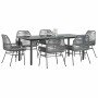 Juego comedor jardín 5 pzas cojines ratán sintético vidrio gris