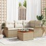 Conjunto de sofá de jardín con cojín Manual 5 pcs Negro y crema