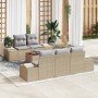 Este juego de sofá de jardín te permite transformar tus espacios exteriores en un refugio moderno. Con su diseño modular y textura tejida, proporciona una disposición de asientos acogedora y chic que amplifica al instante cualquier jardín o terraza. Es perfecto para cualquiera que busque crear un espacio para entretener a los invitados o relajarse después de un largo día. El estilo moderno combinado con la robusta construcción y la versatilidad funcional lo convierten en una adición fantástica para cualquier entorno al aire libre, proporcionando comodidad en medio de una elegante simplicidad. Materiales: El conjunto de sofá está hecho de materiales duraderos, incluyendo poliratán tejido alrededor de un marco de acero con recubrimiento en polvo y complementado por una superficie de madera de acacia sólida. Estos materiales garantizan estabilidad y longevidad, haciéndolo perfecto para el ocio al aire libre. Las propiedades resistentes a los UV protegen de la luz solar intensa, manteniendo el conjunto con un aspecto impecable a lo largo del tiempo. Componentes incluidos: Este conjunto incluye múltiples piezas: un asiento central principal con almacenamiento, varios sofás y una mesa de jardín, cada uno equipado con bolsas de almacenamiento resistentes al agua. Estos componentes están diseñados para aumentar la funcionalidad y asegurar una armoniosa mezcla con la naturaleza mientras maximizan la eficiencia del espacio. Características / Función / Diseño: Con un diseño modular, el conjunto ofrece versatilidad en las disposiciones de asientos. Las patas ajustables permiten a los usuarios personalizar las alturas para superficies de patio planas o céspedes, proporcionando mayor comodidad para asientos prolongados. Sus líneas limpias y modernas se integran sin esfuerzo en varias estéticas de diseño. Usos recomendados: Ideal para jardines, patios y terrazas, este conjunto se adapta a reuniones de temporada, relajación en solitario o cenas informales. La apariencia elegante y las características funcionales apoyan diversos entornos, desde brunches primaverales hasta descansos veraniegos. Cuidado y mantenimiento: Un cuidado adecuado extiende la vida de tus muebles. Protégerlo con una funda cuando no esté en uso, manteniendo su apariencia fresca. Un fácil mantenimiento fomenta disfrutar continuamente de esta impresionante solución de asientos al aire libre.