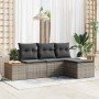 Conjunto de sofá de jardín con cojín 4 pcs Beige y Gris Claro