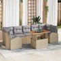 Este Conjunto de Sofás de Jardín trae un ambiente moderno y acogedor a tu espacio exterior. Está diseñado para afuera y su forma modular te deja configurarlo de mil maneras, así que es perfecto para jardines, terrazas o patios donde puedes relajarte o pasar un rato con amigos. El polirratán tejido tiene un buen aspecto y se complementa con el acabado mate del marco, asegurando que sea estiloso y cómodo en cualquier parte de tu exterior. Polirratán Hecho a Mano: Este Conjunto de Sofás de Jardín está hecho de polirratán de alta calidad, que le da un look genial y se adapta a cualquier jardín. Es un material resistente que aguanta el clima, manteniéndolo atractivo en cualquier temporada, así que puedes disfrutar al aire libre sin preocuparte tanto por el sol o la lluvia. Almacenamiento Integrado: Cada brazo y asiento de esquina tiene un espacioso compartimento de almacenamiento a prueba de agua, ideal para guardar cosas del jardín o cojines. Esto mantendrá tu jardín ordenado y te permitirá acceder a las cosas fácilmente mientras están fuera de la vista. Conjunto Completo: Viene como un set completo, con dos sofás de brazo, dos asientos de esquina, tres asientos centrales con almacenamiento y una mesa de jardín. Se puede juntar fácilmente para crear una zona de asientos que se integra perfecto con tu espacio exterior. Comodidad Resistente al Agua: Cada pieza tiene cojines rellenos de espuma con fundas de poliéster, que son muy cómodas y aguantan el clima. Debido a sus propiedades resistentes al agua, se mantienen secos y acogedores, ideales para una experiencia relajada al aire libre sin complicaciones. Mantenimiento Sencillo: Para mantenerlo bien solo dale un repaso con un trapo húmedo y usa fundas cuando no esté en uso. Estos sencillos consejos de cuidado ayudan a alargar la vida del conjunto y mantenerlo bonito, ofreciéndote una experiencia sin líos.