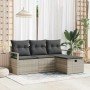 Conjunto de sofá de jardín con cojín 4 pcs beige y gris claro