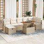 Conjunto de sofá de jardín con cojín 8 pcs Beige Poliratán