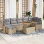 Conjunto de sofá de jardín con cojín 8 pcs Beige Poliratán