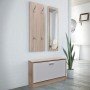 Este set de mueble zapatero 3 en 1 consta de un elegante armario zapatero, un espejo de pared y un perchero, por lo que ofrece múltiples soluciones de almacenaje. Material robusto: La madera contrachapada tiene una calidad excepcional, con una superficie lisa y también cuenta con fuerza, estabilidad y resistencia a la humedad.Amplio espacio de almacenaje: El mueble zapatero cuenta con un gran compartimento con división centrar para mantener las cosas organizadas. Ya no te volverán a molestar los zapatos tirados por el suelo.Diseño práctico: El perchero está equipado con 4 resistentes ganchos para abrigos, bolsos, sombreros, bufandas y otros artículos para llevar. El espejo es lo bastante grande para que te acicales bien. Nota:Cada producto viene con un manual de montaje en la caja para facilitar el montaje.
