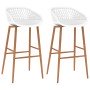 Nuestro conjunto de 4 sillas de bar es ideal para disfrutar de unos sorbos de vino en el bar, tomar un bocado en el mostrador o para utilizar como asientos adicionales cuando tienes invitados. Estas sillas pub tienen un asiento de diseño ergonómico con respaldo bajo integrado en un aspecto de malla. Hechas de PP robusto y con fuertes patas de metal con impresión de transferencia de calor en aspecto de madera, estas sillas de barra son sólidas y duraderas. Estos taburetes de cocina son fáciles de montar.