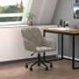 Esta moderna silla de oficina giratoria es una combinación perfecta de elegancia y comodidad. Atraerá todas las miradas en tu lugar de trabajo. Terciopelo suave: El terciopelo es una tela suave y lujosa, reconocida por su denso pelo de fibras cortadas de forma uniforme que tienen una suave pelusa. La tela de terciopelo posee un característico y suave tacto, lo que hace que sea cómoda al tacto.Estructura robusta y estable: Las estructuras de metal y madera contrachapada de la silla de escritorio garantizan su solidez y estabilidad.Altura regulable: Esta silla de oficina cuenta con un mecanismo de elevación a gas; puedes utilizar la palanca para ajustar la altura del asiento a tu gusto y comodidad.Silla flexible con ruedas: El diseño giratorio de 360 grados y las ruedecitas permiten un amplio rango de movimientos.