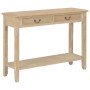 ¡Agregue un toque de elegancia a la decoración de su hogar con nuestra clásica mesa consola de madera! Hecha de MDF, madera de pino maciza y un exclusivo barniz de paulownia, esta mesa consola será un gran aporte para tu hogar. También se puede usar como mesa auxiliar o aparador. La mesa tiene un tablero de MDF robusto, en el que puede colocar artículos decorativos como cestas de frutas o jarrones. Las patas de madera maciza de pino garantizan su estabilidad y durabilidad, para que sirva durante muchos años. Además, los 2 cajones brindan un amplio espacio para colocar todo tipo de artículos más pequeños organizados y al alcance. El estante ofrece un lugar adicional para guardar tus zapatos y otras pertenencias.