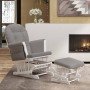 ¡Relájate y disfruta de tu tiempo libre en este elegante sillón con taburete! Función deslizante: La silla de relajación y el reposapiés incluido se pueden mover hacia adelante y hacia atrás, lo que lo hace ideal para alimentar y calmar a tu bebé. Diversos usos: Este sillón de lactancia se puede usar en cualquier lugar de la casa, ya sea que estés cuidando a tu bebé en la habitación infantil o relajándote en el salón o el dormitorio.Material duradero: La madera maciza de caucho es un bonito material natural. La madera de caucho tiene un grano denso y es resistente a los golpes y duradera. La tela posee un aspecto sencillo y limpio, y es transpirable y duradera.Cómoda experiencia de asiento: El balancín tiene cojines gruesos y reposabrazos tapizados para más comodidad.Diseño práctico: Esta silla de lactancia deslizable tiene bolsillos laterales que te permiten tener objetos pequeños al alcance de la mano. Información útil:Para facilitar al máximo el montaje, cada producto se entrega con un manual.