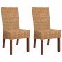 Este juego de sillas de comedor de ratán genuino con su aspecto tropical será una gran adición a su decoración. La estructura de madera dura y el ratán genuino hacen que las sillas no solo sean estructuralmente sólidas, sino también estéticamente bonitas. Los asientos tapizados en ratán genuino son muy cómodos. Si estás buscando algo para complementar la decoración de tu cocina o comedor, este atractivo juego de sillas tejidas a mano será una excelente opción. La entrega incluye 4 sillas. Nota: Las sillas están tejidas a mano con ratán genuino, por lo que pueden tener algunas variaciones de color. No se incluye mesa.