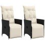 Sillones reclinable jardín cojines 2 uds ratán sintético negro