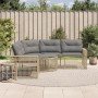 Sofá de jardín forma L cojines y taburete ratán PE gris claro
