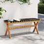 Banco de jardín madera maciza de acacia y tela azul oscuro