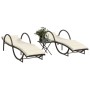 Tumbona con cojín ratán sintético beige 60x199x42 cm