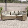 Sofá de jardín en forma de L con cojines ratán sintético marrón