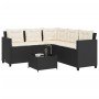 Sofá de jardín en forma de L con mesa y cojines ratán PE gris