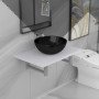 Nuestro práctico y atemporal conjunto de muebles de baño se compone de un estante de pared y un lavabo redondo. Será un aporte elegante para cualquier baño, lavabo o tocador. Hecho de un material resistente, el estante de pared del baño es muy estable y duradero, lo que lo convierte en el lugar perfecto para colocar el lavabo de cerámica incluido. El lavabo de cerámica tiene un acabado brillante y es fácil de limpiar con un paño húmedo. Además, los muebles de baño se pueden instalar fácilmente en la pared con nuestros soportes y materiales de montaje incluidos. ¡La combinación perfecta de estante de pared y lavabo será el foco de atención de tu baño! Ten en cuenta que no se incluye drenaje en la entrega.