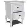 ¡Dale un toque de elegancia a la decoración de tu hogar con nuestra mesita de noche de estilo francés! También puede usarse como mesita para el teléfono al lado del sofá. El mueble compacto tiene 2 cajones que se deslizan suavemente y brindan un amplio espacio para mantener los artículos pequeños organizados y al alcance. Fabricado con madera maciza y MDF, la mesita de noche es muy duradera y fácil de limpiar. La entrega incluye 2 mesitas de noche