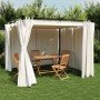 Crea momentos inolvidables: ¡reúnete, relájate y disfruta del tiempo en familia bajo este cenador! Estructura robusta y duradera: Fabricada en acero resistente a la oxidación, la estructura es apreciada para su uso prolongado en exteriores. Garantiza la estabilidad con vigas macizas para soportar el techo y soportes reforzados. Amplio espacio: El cenador de jardín es lo suficientemente grande para que quepan tu familia e invitados. También puedes agregar mesas de comedor. Techo retráctil: El techo está hecho de poliéster duradero con un revestimiento de PA que es resistente al agua y a los rayos UV. Además, el techo es retráctil, por lo que puedes ajustarlo para tener una sombra óptima y un ambiente exterior cómodo en los calurosos días de verano. Cortinas prácticas: Las paredes laterales de cortina permiten disfrutar de un ambiente relativamente privado con tu familia y amigos. Además, pueden protegerte eficazmente de los molestos insectos, proporcionando un espacio de descanso cómodo. Las cremalleras facilitan el acceso hacia adentro y hacia afuera. Diversos usos: Esta cenador de patio se puede utilizar para una amplia gama de propósitos, desde cenas al aire libre y entretenimiento hasta relajación y meditación. Información útil:Este producto no es adecuado para usar en condiciones meteorológicas adversas, como vientos fuertes, lluvia intensa, nieve, tormenta, etc.