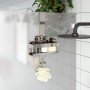 Este estante de ducha colgante no solo es elegante sino también muy funcional, y será una excelente opción para aquellos que necesitan espacio de almacenamiento adicional. Material duradero: El acero inoxidable es conocido por su resistencia a la corrosión, durabilidad, bajos requisitos de mantenimiento y aspecto elegante, lo que lo convierte en una opción ideal para diversas industrias, incluidas la construcción y los productos para el hogar.Práctico diseño 2 en 1: Este estante de ducha colgante ofrece una cómoda solución de almacenamiento para los artículos esenciales de la ducha. Puedes colgar toallas y albornoces en los ganchos externos y mantener esponjas de ducha y maquinillas de afeitar en los ganchos internos para facilitar el acceso.Amplio espacio de almacenamiento: La cesta de almacenamiento ofrece suficiente espacio para gel de ducha, jabón, champú y otros artículos esenciales.