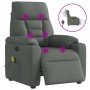 ¡Siéntate y descansa en este comodísimo sillón reclinable de masaje! Función de reclinado manual: Este sillón reclinable tiene un mango en el lado derecho. Con sólo tirar de él, puedes ajustar manualmente el reposapiés y el respaldo a cualquier posición que te resulte cómoda. Esta función permite una inclinación máxima de 135 grados. Además, el respaldo vuelve rápidamente a su posición original con solo tirar del mango.Función de masaje: Los 6 puntos de masaje te permiten experimentar un masaje mejor dirigido. Además, el mando incluido te permite elegir diferentes programas de masaje. La función de masaje funciona con el conector USB, pero no se incluye la fuente de alimentación USB de 5 V certificada.Cómodo asiento: El mullido asiento , el respaldo y los amplios reposabrazos cubiertos de tela proporcionan una sensación cómoda y acogedora, para que estés de maravilla mientras estás sentado. La tela posee un aspecto sencillo y limpio, y es transpirable y duradera.Prácticos portavasos y bolsillo lateral: Este sillón cuenta con dos cómodos portavasos para las bebidas y un bolsillo lateral para que tengas tus cosas al alcance de la mano.Estructura maciza y estable: La estructura, hecha de madera y metal, proporciona una estructura y una estabilidad fuertes. Este sillón reclinables es cómodo y duradero.