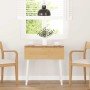 Ya sea que organice cenas o trabaje desde casa, esta mesa de comedor es una opción ideal para agregarla como complemento confiable y elegante a su rutina diaria. Material robusto y estable: la madera maciza de caucho es un material natural muy bonito. La madera de caucho tiene una veta densa y es resistente a los golpes y duradera.Uso versátil: Con su moderno diseño de hoja abatible, esta mesa funciona como una mesa de comedor y un cómodo espacio de trabajo para un ordenador, así como una encantadora mesa de desayuno. Su versatilidad lo convierte en un excelente complemento para cualquier espacio.Tablero resistente: La mesa del comedor tiene un tablero resistente, sobre el cual puedes colocar alimentos o bebidas, o exhibir objetos decorativos como marcos de fotos o incluso plantas en macetas.Fácil de mantener: Gracias a su superficie lisa, la mesa de comedor es fácil de limpiar con un paño húmedo y requiere menos mantenimiento.