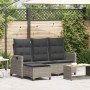 Sofá de jardín reclinable con cojines en forma de L ratán negro