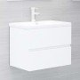 Este elegante mueble de baño con lavabo integrado y amplio espacio de almacenaje es un aporte excelente para el cuarto de baño, ¡ya que le dará un aspecto ordenado y llamativo! Material robusto: El armario para lavabo está hecho de madera contrachapada, que tiene una calidad excepcional, con una superficie lisa y también cuenta con fuerza, estabilidad y resistencia a la humedad.Amplio almacenaje: El armario de baño posee un cajón, que ofrece un amplio espacio de almacenamiento para guardar artículos en el baño.Diseño práctico: La parte superior de este armario de baño es ideal para colocar el lavamanos.Función de montaje en la pared: El armario del baño puede montarse en la pared para añadir espacio de almacenamiento adicional. Así podrás aprovechar al máximo el espacio del suelo y mantener la zona limpia.Rebosadero: También está equipado con un agujero de desagüe para que fluya el agua cuando se llena demasiado. Nota:Los tornillos y los tacos para el interior de la pared no están incluidos. Busca y utiliza tornillos y tacos adecuados para tus paredes. Si no lo tienes claro, busca asesoramiento profesional. Lee y sigue cada paso de las instrucciones cuidadosamente.El grifo y el desagüe no están incluidos en la entrega.Cada producto viene con un manual de montaje en la caja para facilitar el montaje.