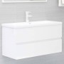 Este elegante mueble de baño con lavabo integrado y amplio espacio de almacenaje es un aporte excelente para el cuarto de baño, ¡ya que le dará un aspecto ordenado y llamativo! Material robusto: El armario para lavabo está hecho de madera contrachapada, que tiene una calidad excepcional, con una superficie lisa y también cuenta con fuerza, estabilidad y resistencia a la humedad.Amplio almacenaje: El armario de baño posee un cajón, que ofrece un amplio espacio de almacenamiento para guardar artículos en el baño.Diseño práctico: La parte superior de este armario de baño es ideal para colocar el lavamanos.Función de montaje en la pared: El armario del baño puede montarse en la pared para añadir espacio de almacenamiento adicional. Así podrás aprovechar al máximo el espacio del suelo y mantener la zona limpia.Rebosadero: También está equipado con un agujero de desagüe para que fluya el agua cuando se llena demasiado. Nota:Los tornillos y los tacos para el interior de la pared no están incluidos. Busca y utiliza tornillos y tacos adecuados para tus paredes. Si no lo tienes claro, busca asesoramiento profesional. Lee y sigue cada paso de las instrucciones cuidadosamente.El grifo y el desagüe no están incluidos en la entrega.Cada producto viene con un manual de montaje en la caja para facilitar el montaje.