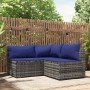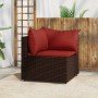 Sofá de esquina de jardín con cojines ratán sintético negro