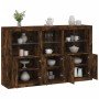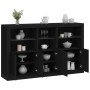 Decora el salón con este moderno aparador con luces LED, que combina fácilmente con muebles de cualquier estilo. Material duradero: La madera de ingeniería tiene una calidad excepcional, con una superficie lisa y también cuenta con fuerza, estabilidad y resistencia a la humedad.Luces LED RGB: El armario buffet está equipado con brillantes luces LED RGB. Con diversos menús personalizables, puedes cambiar el color de las luces sin problemas e incluso hacer que se ajusten automáticamente. Estas luces LED no sólo realzan el aspecto moderno del aparador, sino que también le dan un toque de moda.Amplio espacio de almacenaje: El armario de almacenaje ofrece mucho espacio para guardar a mano y en orden los artículos cotidianos.Función expositora: La resistente superficie del mueble de recibidor es ideal para exponer objetos decorativos, marcos de fotos o plantas.Puertas prácticas: Mantén tus cosas sin polvo ocultándolas tras las puertas del armario auxiliar. Información útil:El producto tiene un conector USB que necesita una fuente de alimentación USB certificada de 5 V (no incluida). Advertencia:Para evitar que vuelque, este producto debe usarse con el dispositivo de fijación a la pared incluido.