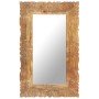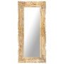 Este espejo de madera maciza de mango es más que un objeto práctico para el día a día, también es una decoración atractiva para tu hogar. La madera maciza de mango es una madera dura tropical. Tiene fuerza para soportar peso y también es resistente al desgaste del tiempo. Además, la exquisita artesanía y las hermosas vetas de madera hacen que cada espejo de madera sea ligeramente diferente al siguiente. El patrón tallado a mano se suma a la belleza del espejo. Nota importante: Los colores y las vetas de la madera pueden variar de una pieza a otra, por lo que cada pieza es única y ligeramente diferente al resto; la entrega es aleatoria.