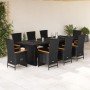 Set de comedor jardín 11 pzas con cojines ratán sintético negro
