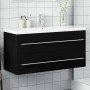 Este elegante mueble de baño con lavabo integrado y amplio espacio de almacenaje es un aporte excelente para el cuarto de baño, ¡ya que le dará un aspecto ordenado y llamativo! Material robusto: El armario para lavabo está hecho de madera contrachapada, que tiene una calidad excepcional, con una superficie lisa y también cuenta con fuerza, estabilidad y resistencia a la humedad.Amplio almacenaje: El armario de baño posee 1 cajón, que ofrece un amplio espacio de almacenamiento para guardar artículos en el baño.Función de montaje en la pared: El armario del baño puede montarse en la pared para añadir espacio de almacenamiento adicional. Así podrás aprovechar al máximo el espacio del suelo y mantener la zona limpia.Elegante lavabo: El lavabo del baño está hecho de cerámica lisa de larga duración y fácil limpieza. La superficie esmaltada aporta un diseño moderno y elegante a la vez.Práctico rebosadero: El lavabo está equipado con una opción para evitar rebosamientos y permitir que el agua salga si se llena demasiado. Información útil:Los tornillos y los tacos para el interior de la pared no están incluidos. Busca y utiliza tornillos y tacos adecuados para tus paredes. Si no lo tienes claro, busca asesoramiento profesional. Lee y sigue cada paso de las instrucciones cuidadosamente.El grifo y el escurridor de empuje con función de rebosadero están incluidos.El grifo es de agua fría y caliente, y si necesitas agua caliente, hay que conectar un calentador de agua.