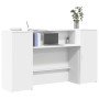 Disfrute de interacciones fluidas, amplio espacio de almacenamiento y un diseño versátil con este mostrador de recepción que cuenta con un mostrador incorporado, lo que lo hace perfecto para diversos entornos. Material estable y duradero: La madera de ingeniería es un material duradero y estable con una superficie lisa que es resistente a la humedad, la deformación y la rotura, lo que la convierte en una opción fiable para una variedad de proyectos.Diseño cuidadoso: Los mostradores altos y los paneles laterales del mostrador de recepción garantizan interacciones discretas, proporcionando un equilibrio de funcionalidad y privacidad tanto para el personal como para los visitantes.Amplio espacio de almacenamiento: el escritorio frontal y el gabinete ofrecen un amplio espacio de almacenamiento para mantener sus suministros de oficina, documentos, artículos personales y otros elementos esenciales bien organizados y al alcance de la mano.Aplicación versátil: este mostrador de caja es perfecto para una variedad de entornos, incluidas oficinas corporativas, vestíbulos de hoteles, clínicas médicas y salones de belleza, satisfaciendo diversas necesidades profesionales.Fácil instalación: instrucciones claras y un proceso de montaje sencillo hacen que este mostrador de recepción sea fácil de instalar, de forma rápida y sin esfuerzo. Advertencia:Para evitar que vuelque, este producto debe usarse con el dispositivo de fijación a la pared suministrado. Información útil:Los tornillos y los tacos para el interior de la pared no están incluidos. Busca y utiliza tornillos y tacos adecuados para tus paredes. Si no lo tienes claro, busca asesoramiento profesional. Lee y sigue cada paso de las instrucciones cuidadosamente.