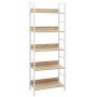 Este mueble estantería de 5 niveles puede usarse en el salón como una librería o para colocar objetos decorativos, o en el patio para poner plantas, etc. Es un aporte atemporal para la decoración de tu hogar. La estantería está hecha de madera de ingeniería, por lo que se limpia fácilmente con un paño húmedo. La robusta estructura de acero la hace inoxidable y refuerza su estilo industrial. La estantería de almacenaje tiene un diseño compacto, por lo que saca el máximo partido a los espacios limitados. Este mueble tiene 5 niveles, por lo que te ofrece amplio espacio para guardar y colocar tu colección de libros, flores, CD, DVD y demás objetos decorativos. Nuestra estantería de pie es fácil de montar.