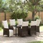 Este set de comedor de jardín une la practicidad con un look moderno, dándote un espacio elegante y cómodo para reuniones al aire libre. Sus líneas definidas y estilo minimalista combinan bien con cualquier jardín o terraza, creando un lugar agradable para relajarte y conectarte con otros. Las texturas suaves y los tonos oscuros del set le dan un toque sofisticado y actual. Ya sea que estés organizando un brunch de verano o disfrutando de un buen libro al sol, este set asegura tu comodidad con sus características ajustables. Textura de Poliratán: Hecho de poliratán de alta calidad, este set presenta un acabado tejido que es elegante y resistente a los rayos UV y al agua. El material duradero asegura que se mantenga bien sin importar el clima. Cojines con Cierre de Cremallera: Los cojines de exterior tienen fundas con cremallera para limpiarlos sin complicaciones. La tela resistente a la intemperie es cómoda y se mantiene bien, pase lo que pase. Mecanismo Reclinable: Relájate cuando quieras con el respaldo ajustable. Se puede cambiar fácilmente usando una manija práctica para conseguir el nivel de comodidad perfecto para tu espacio exterior. Apoyabrazos Planos: Los apoyabrazos de poliratán hacen que cada momento casual sea más relajante. Se integran bien con la función reclinable y suman al confort. Estructura con Recubrimiento en Polvo: La estructura de acero tiene un recubrimiento en polvo para mayor resistencia y le da un toque moderno. Este acabado asegura que mantenga su buena apariencia a largo plazo y proporciona el soporte necesario para los muebles exteriores.