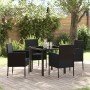 Conjunto de Comedor de Jardín con cojín 5 pcs Negro Poliratán