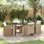 Conjunto de Comedor de Jardín con cojín 5 pcs Beige Poliratán