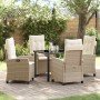 Este Conjunto de Comedor de Jardín une un estilo moderno con practicidad, siendo perfecto para cualquier jardín o terraza. Con sillas reclinables que te dejan relajarte como quieras, es ideal para esas comidas al aire libre. Sus líneas simples le dan un aire contemporáneo que se mezcla genial con la naturaleza, creando un espacio cálido para charlar o simplemente relajarte. Materiales: Este Conjunto de Comedor de Jardín está hecho de una mezcla elegante de poliratán, acero y vidrio. El poliratán es atractivo y resistente al clima, mientras que el acero aporta robustez y la superficie de vidrio es chic y fácil de limpiar. Esta combinación garantiza que durará y se verá genial durante años, listo para todo, desde lluvias hasta minuciosidad sobre días soleados. Componentes incluidos: Este conjunto viene con sillas reclinables que te permiten ajustar tu comodidad. Los asientos y respaldos son sólidos pero cómodos. Los reposabrazos suman al estilo y confort. La mesa de vidrio elegante realza tu experiencia en la mesa, siendo práctica y chic. Características / Función / Diseño: Ideal para cualquier jardín moderno, este conjunto es perfecto para todo tipo de reuniones. Con reposabrazos rectos y patas robustas, tiene un aspecto limpio y minimalista. Los respaldos ajustables permiten a los invitados elegir el ángulo perfecto para disfrutar, ya sea para relajarse o comer. Usos recomendados: Perfecto para reuniones en verano, este conjunto transforma cualquier espacio exterior en un comedor elegante, ya sea para comidas familiares o para disfrutar con amigos. Su diseño versátil se adapta a diferentes entornos exteriores como jardines, terrazas o patios, ideal para quienes buscan mejorar su vida al aire libre. Cuidado y mantenimiento: Mantener este conjunto es muy fácil. Usa una funda cuando no lo uses y limpia las superficies con un paño húmedo. Evita limpiadores fuertes que puedan dañar el poliratán y el vidrio. Seguir estos pasos mantendrá el conjunto luciendo genial y funcional durante muchas temporadas.