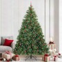 240 cm , Verde , con luces LED y bolas rojas