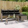 Sofá de jardín en forma de L con mesa y cojines ratán PE negro