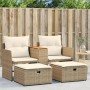 Sofá de jardín 2 plazas con toldo y taburetes ratán PE negro