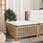 Taburete de jardín y cojín ratán sintético gris 63,5x56x32 cm